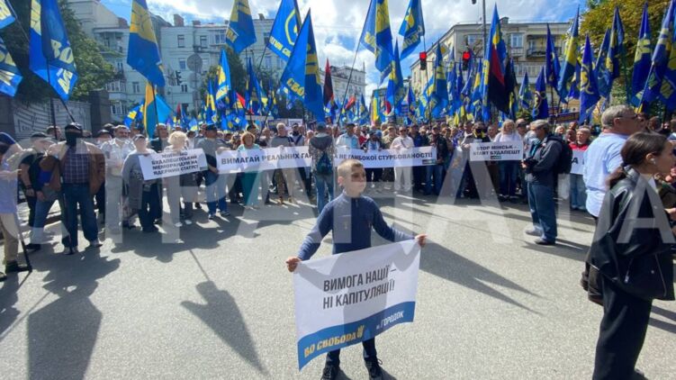Цель мероприятия, по данным организаторов, - озвучить "требования нации" накануне визита Владимира Зеленского в США. В частности, "свободовцы" хотят отказа украинских властей от реализации Минских соглашений и имплементации формулы Штайнмайера. Кроме того, участники марша требуют не предоставлять Донбассу особый статус и не проводить на неподконтрольных территориях выборы.