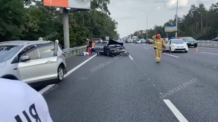 Появилось видео последствий аварии под Киевом, в которую 23 августа попал "слуга народа" Александр Трухин.