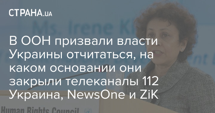 Специальный докладчик ООН по вопросу о поощрении и защите права на свободу мнений и их свободное выражение Айрин Хан обратилась к правительству Украины по поводу закрытия телеканалов "112 Украина", NewsOne и ZiK. Она считает, что такое решение может ограничивать право на свободу выражения мнения и право на информацию. И призвала власти ответить, на каком основании были запрещены каналы.