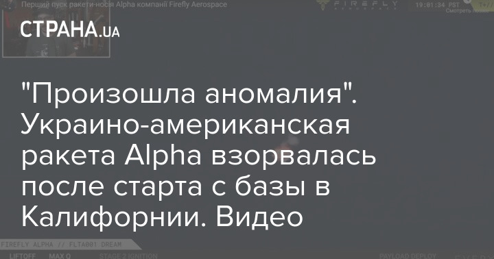 Ранним утром 3 сентября, в 05:00 (по киевскому времени) в США стартовала в космос ракета Alpha украино-американской космической компании Firefly Aerospace (владелец украинский бизнесмен Макс Поляков - Ред. ).