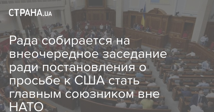 На внеочередное заседание, которое состоится по требованию 153 нардепов, народные избранники соберутся сразу после очередного пленарного заседания. На повестке стоит проект постановления об обращении Верховной Рады к Конгрессу США о предоставлении Украине двухстороннего статуса основного союзника США вне НАТО (MNNA).
