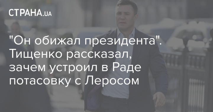 Нардеп от "Слуги народа" Николай Тищенко объяснил, зачем он силой оттащил Гео Лероса от трибуны во время его рассказа о "вагнеровцах". По его словам причиной его поступка было то, что Лерос "начал обижать президента".