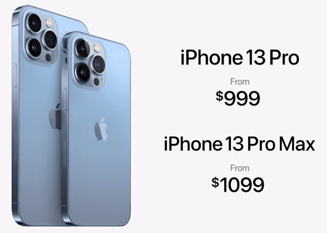 Цена iPhone13 Pro - от 999 долларов, а iPhone13 Pro Max - от 1099 долларов.