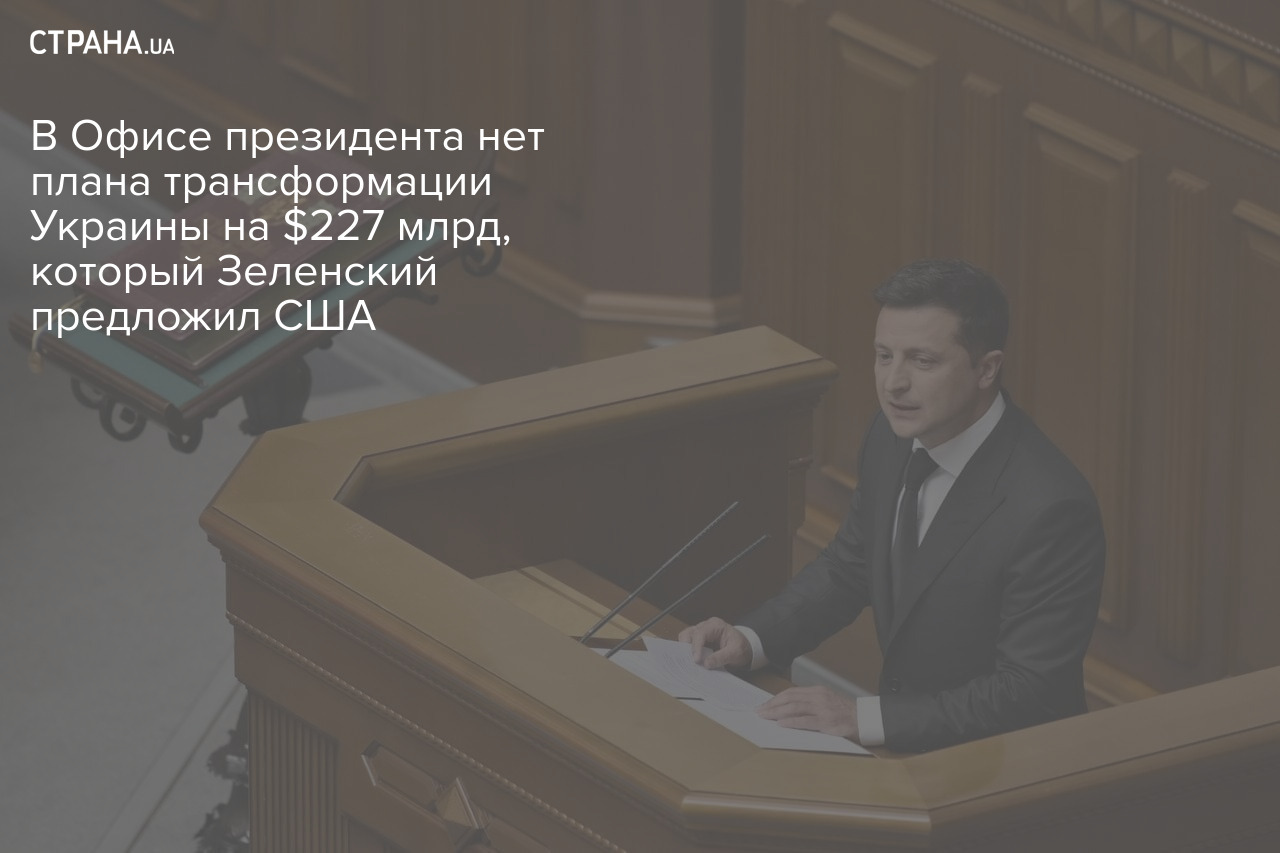 В Офисе президента нет "плана по трансформации Украины" на 227 млрд долларов, который глава украинского государства Владимир Зеленский презентовал во время своей поездки в США