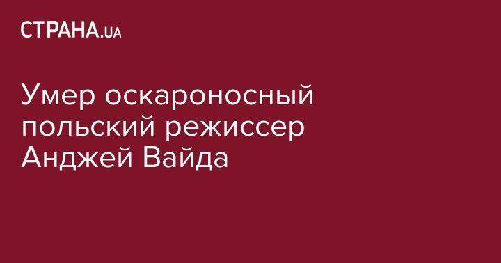 "Обладатель "Оскара" польский режиссер Анджей Вайда скончался в возрасте 90 лет, сообщили его коллеги", - говорится в сообщении.