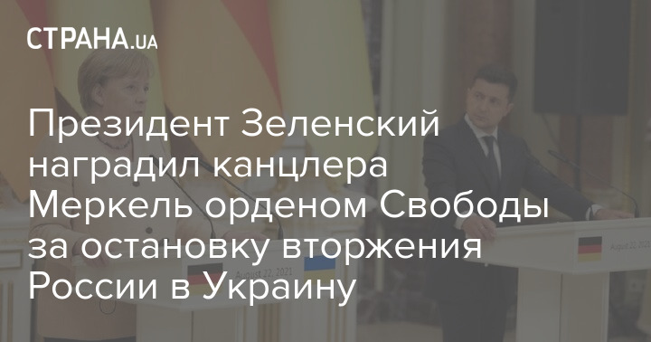 Зеленский наградил Меркель орденом Свободы за остановку вторжение РФ в Украину