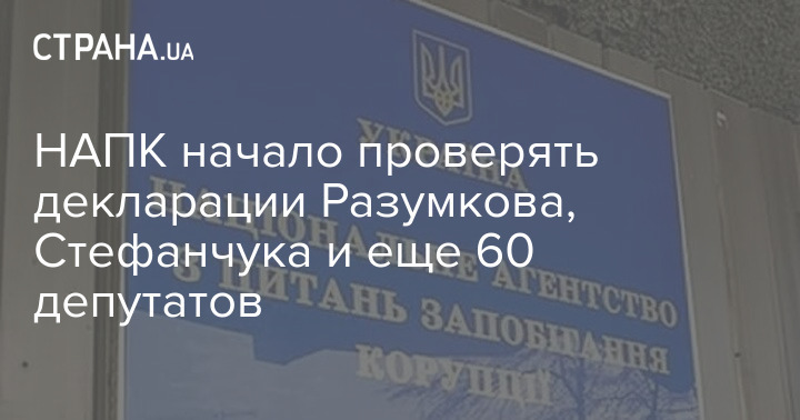 Национальное агентство по предотвращению коррупции начало проверку деклараций спикера Верховной Рады Дмитрия Разумкова, а также нардепов парламента Руслана Стефанчука от "Слуги народа", Нестора Шуфрича из "Оппозиционной платформы - За жизнь" и еще 60 депутатов.