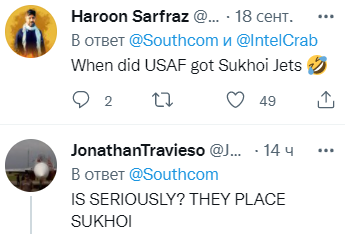 В комментариях пользователи интересуются, откуда у воздушных сил США самолеты российской компании "ОКБ "Сухой".