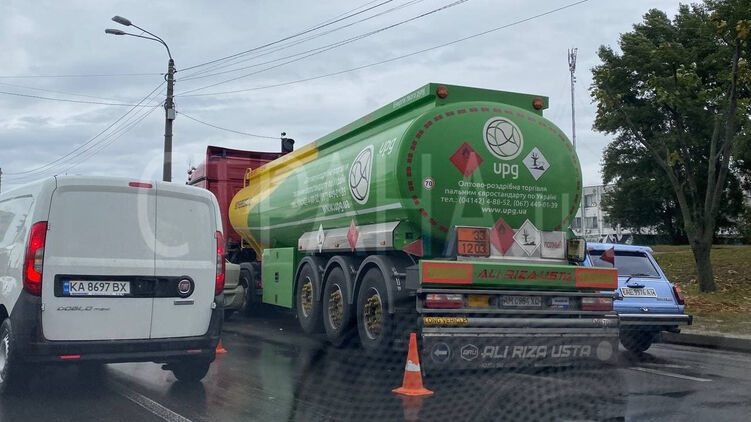 На выезде из Киева в сторону Вышгорода произошло тройное ДТП с участием бензовоза