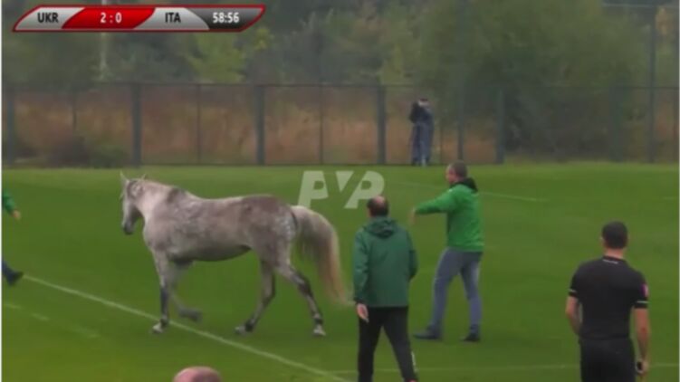 Футбольный мачт Украина-Италия: на поле лошадь. Источник: PVP Poltava