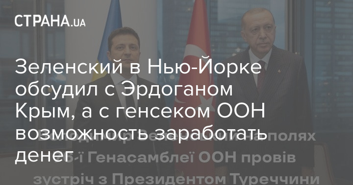 Зеленский в Нью-Йорке обсудил с Эрдоганом Крым, а с генсеком ООН возможность заработать денег