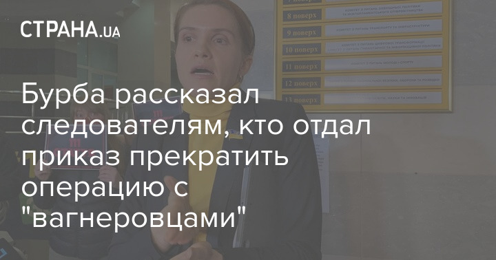 Председатель временной следственной комиссии (ВСК) парламента по расследованию противоправных действий представителей госвласти против суверенитета Украины Марьяна Безуглая заявила, что экс-начальник ГУР Минобороны Василий Бурба сообщил важные детали об операции с "вагнеровцами". Он назвал того, кто отдал приказ ее свернуть.