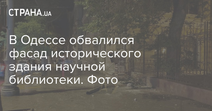 В Одессе обвалился фасад исторического здания научной библиотеки. Фото
