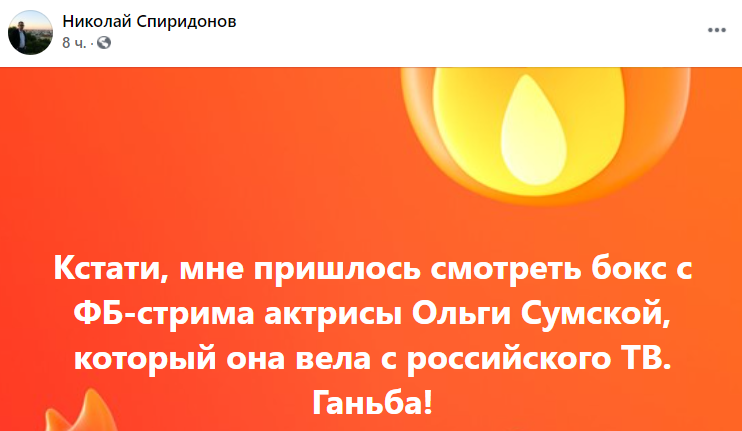 Ретрансляцию с "Рен" запустила у себя в Facebook актриса Ольга Сумская, за что многие украинцы ее благодарили.