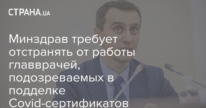 Министерство здравоохранения Украины требует отстранять главврачей за подделку свидетельств о вакцинации на время следствия. По словам главы Минздрава Виктора Ляшко, на нескольких врачей уже завели уголовные дела за подделку свидетельств.