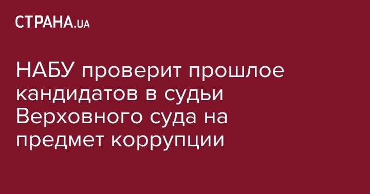 Национальное антикоррупционное бюро Украины (НАБУ) намерено изучить имущественное положение кандидатов в судьи Верховного суда Украины с целью исключить попадание людей с коррупционными рисками в обновленную судебную систему власти. Об этом сообщает "Интерфакс-Украина"