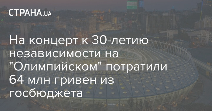 На проведение концерта "Независимость в нашей ДНК. День Независимости страны" в НСК "Олимпийский", который прошел 24 августа в честь 30-й годовщины независимости Украины, из госбюджета выделили 64 млн гривен.