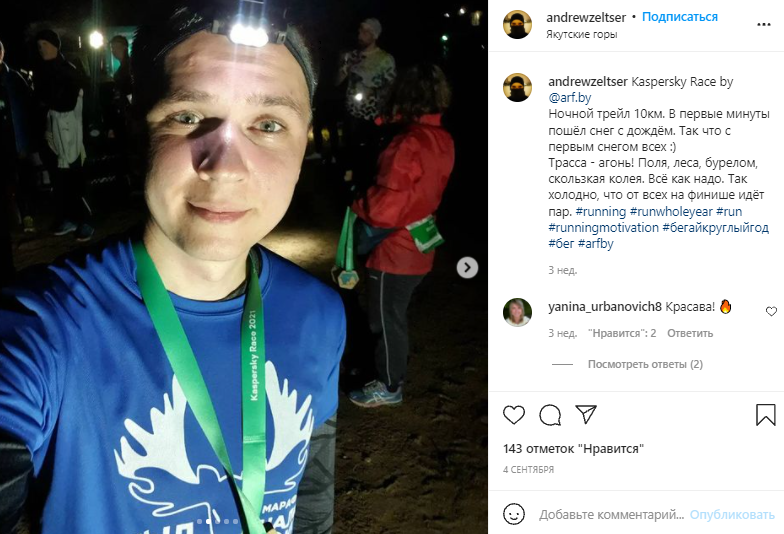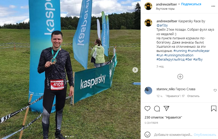 Зельцер также участвовал в веломарафоне и трейловом забеге "Kaspersky Race Купалье", где взял несколько медалей.