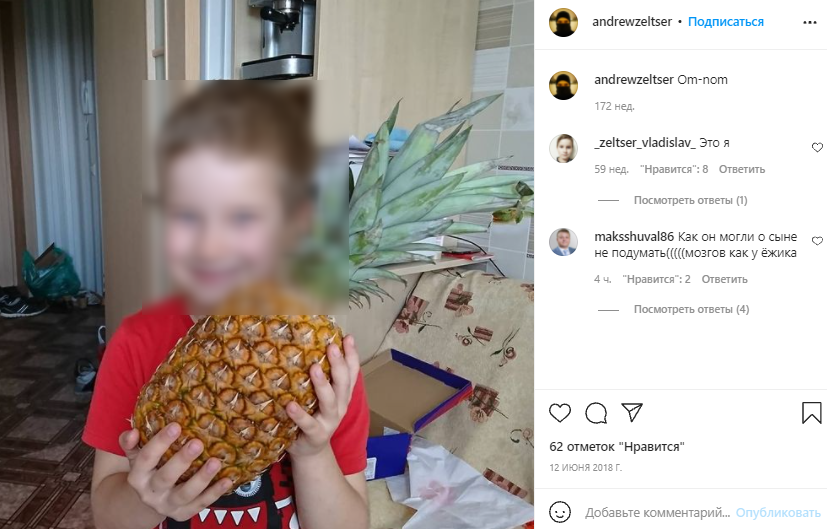 В аккаунте также есть фотографии соревнований прошлых лет, домашние снимки и портрет маленького мальчика с ананасом, по которому можно узнать интерьер помещения, которое штурмовали сотрудники КГБ.