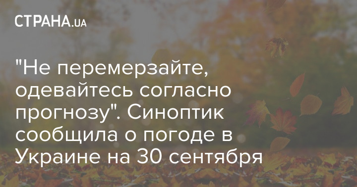 "Не перемерзайте, одевайтесь согласно прогнозу". Синоптик сообщила о погоде в Украине на 30 сентября