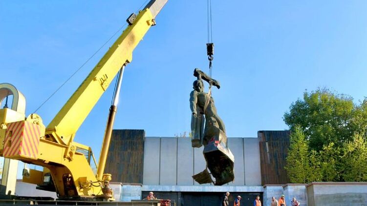 "Избавляемся советской идеологии. Сегодня демонтировали аварийный памятник на площади Скорби", - написал городской голова.