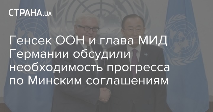 Соблюдение минских соглашений в Украине стало одной из ключевых тем, обсуждаемых на встрече министра иностранных дел Германии Франк-Вальтером Штайнмайером и генерального секретаря ООН Пан Ги Муном.