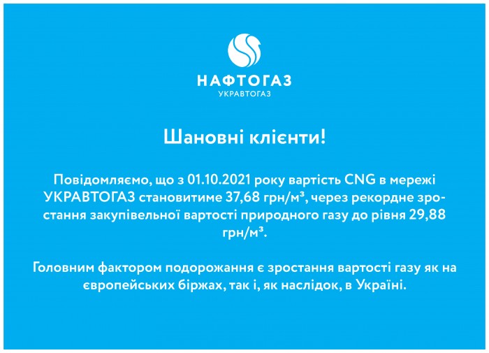 С 1 октября крупнейшая сеть АГНКС "Укравтогаз" (более 90 заправок по стране) повысила цены на метан на 47%, по сравнению с сентябрем - до рекордных 37,68 гривен за куб. Если сравнивать с началом года, ценник взлетел более чем на 140%.