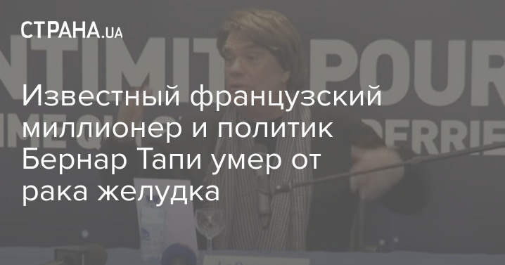 Известный французский бизнес-магнат и политик Бернар Тапи, дом которого в апреле ограбили преступники, умер в возрасте 78 лет после четырехлетней борьбы с раком желудка. Об этом сообщают французские СМИ со ссылкой на его семью.