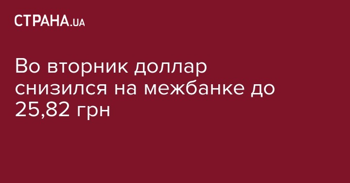 Курс доллара на межбанке во вторник, 11 октября, при закрытии торгов понизился до 25,82 гривен. Об этом сообщает Finance.ua.