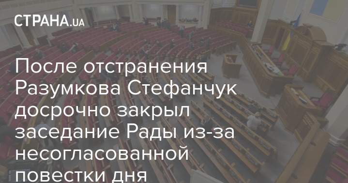 Первый заместитель главы Верховной Рады Руслан Стефанчук досрочно закрыл сегодняшнее пленарное заседание парламента, на котором рассматривали только вопрос отстранения спикера Дмитрия Разумкова. Причиной досрочного закрытия заседания оказалось отсутствие согласованной повестки дня.