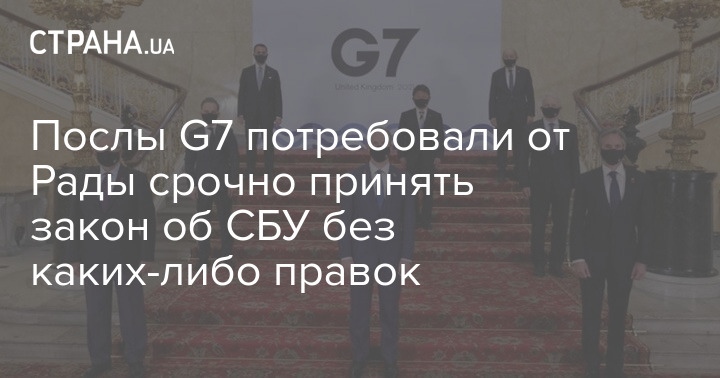 Послы стран "Большой семерки" (G7) подчеркивают важность скорейшего принятия Верховной Радой закона о Службе безопасности Украины без внесения дальнейших поправок.
