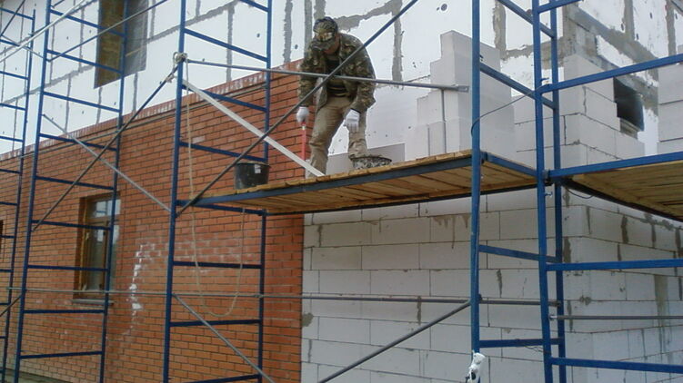 Один из украинцев сорвался с лесов. Фото: artameb.ru