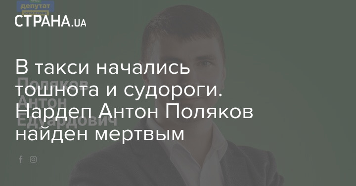 В такси начались тошнота и судороги. Нардеп Антон Поляков найден мертвым