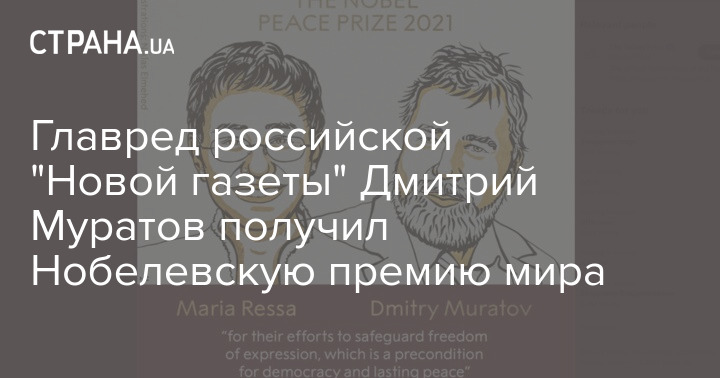 Сегодня, 8 октября, Нобелевский комитет объявил о присуждении Премии мира. Ее получили главный редактор оппозиционной российской "Новой газеты" Дмитрий Муратов (в прошлом журналист "КП" - Ред.) и филиппинская журналистка и писательница Мария Ресса.