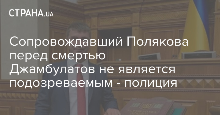 В полиции Киева на брифинге подтвердили информацию "Страны" о том, что помощник нардепа Анны Скороход Рустам Джамбулатов, который вечером перед смертью Полякова находился с ним в ресторане, был допрошен, но не задержан. В полиции  уточнили, что Джамбулатов не является подозреваемым по этому делу.