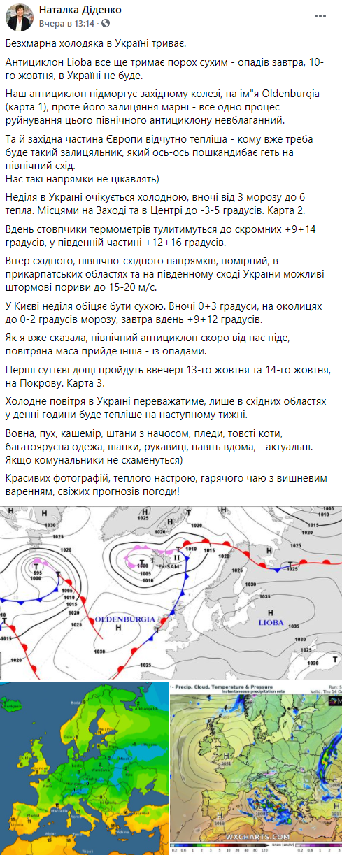 Об этом рассказала синоптик Наталья Диденко у себя в Facebook.