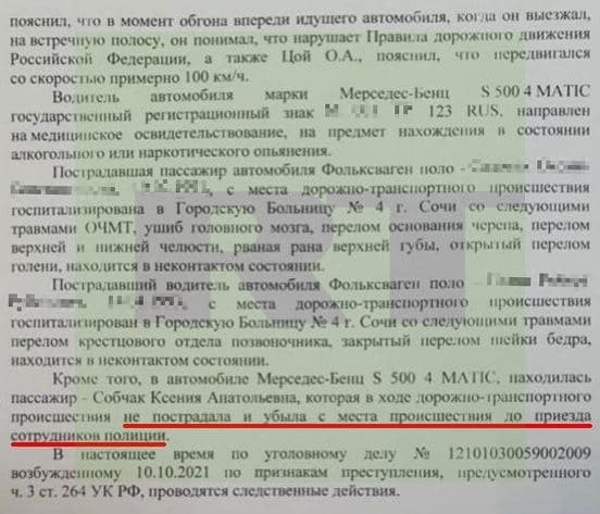 Собчак и ее команда отделались несерьезными травмами. Кроме того, они сразу оставили место аварии, не предложив никому помощи.