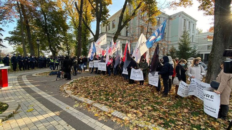 Во вторник, 12 октября, в Киеве, под Мариинским дворцом, где проходит саммит Украина-ЕС, продолжается акция протеста журналистов СМИ, незаконно заблокированных решением СНБО.