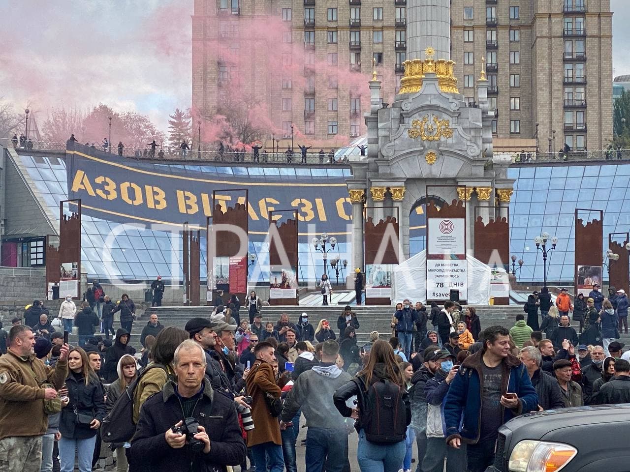 "Нацкорпус" стоит на Майдане. Просто стоит. Свободовцы возле мемориала Героям Небесной Сотни.