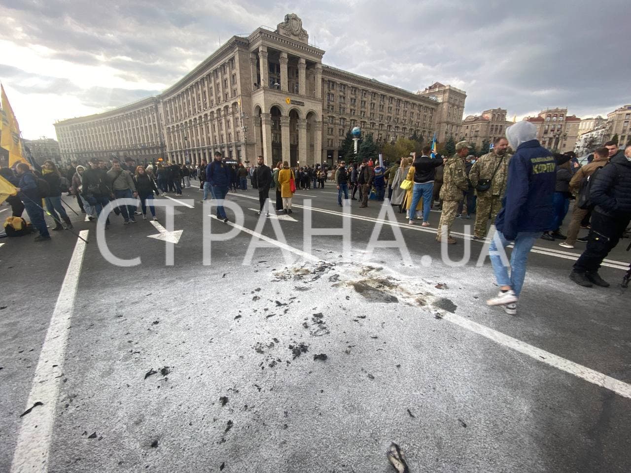 14:32 Колонна приближается к Крещатику. Участник зажег файер.