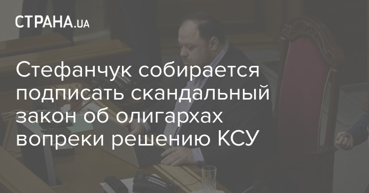 Новый спикер Верховной Рады Стефанчук собирается подписать скандальный закон об олигархах, несмотря на то, что, по словам Дмитрия Разумкова, согласно решению Конституционного суда, это должен делать он.