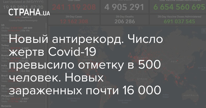 Университет Джона Хопкинса также привел новые данные на утро 19 октября. С начала пандемии на планете уже 241 119 208 человек заразились СOVID-19. Умерли за этот же срок - 4 905 291 человек.