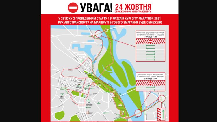 ограничение движения на Северном мосту (в направлении проспекта Бандеры) - с 09:30 до 14:30;