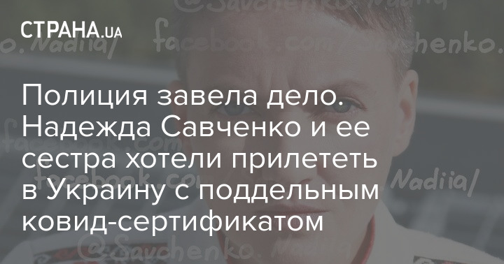 Полиция собирается привлечь к уголовной ответственности экс-нардепа Надежду Савченко и ее сестру Веру за использование поддельного Covid-сертификата при въезде в Украину.
