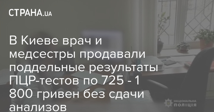 В Киеве врач и медсестры одной из лабораторий продавали сертификаты об отрицательном ПЦР-тесте на COVID-19 без сдачи анализов. Поддельные документы стоили от 725 до 1 800 гривен.