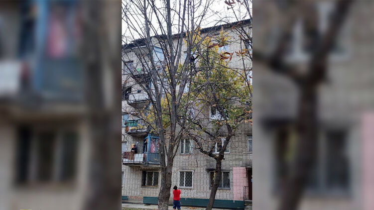 В Никополе беременная женщина забралась на дерево на высоту 4-го этажа и не смогла сама спуститься. Фото