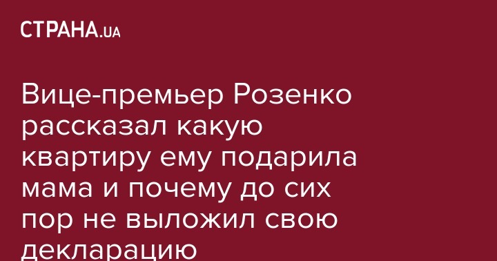 "Моя мама передала мне права на квартиру, в которой я родился, вырос и живу всю жизнь. И я выполнил закон и подал в НАПК информацию об этом. Кстати, первый из членов Кабмина", - сказал Розенко.