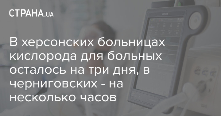 Запасов кислорода в больницах Херсонской области, принимающих пациентов с коронавирусом, хватит лишь на 3 дня.