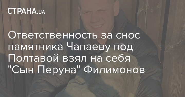 Ответственность за разрушение памятника Чапаеву в Лубнах и других памятников в Полтавской области взяла на себя националистическая организация "Гонор", лидером которой является Сергей Филимонов (он же "сын Перуна"), сыгравший главную роль в фильме режиссера Олега Сенцова "Носорог".