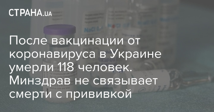 В Украине 118 человек скончались после вакцинации против COVID-19. Такие данные указывает Минздрав в ответе на запрос журналистов. При этом медицинские чиновники никак не связывают эти смерти с последствиями вакцинации. По данным на 21 октября, всего в Украине две дозы вакцины получили  6 829 174 человек, а одну - 8 557 657 человек.